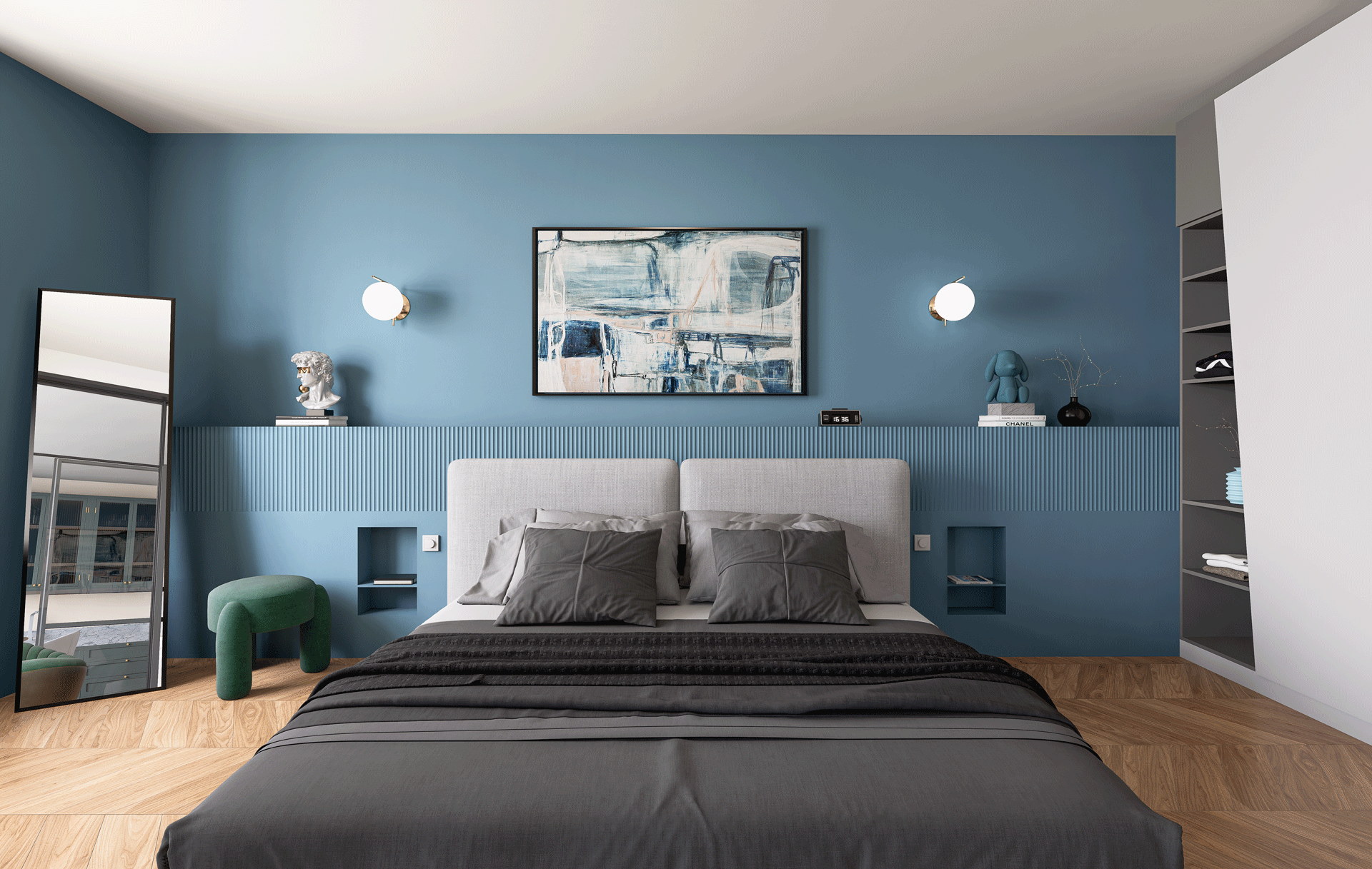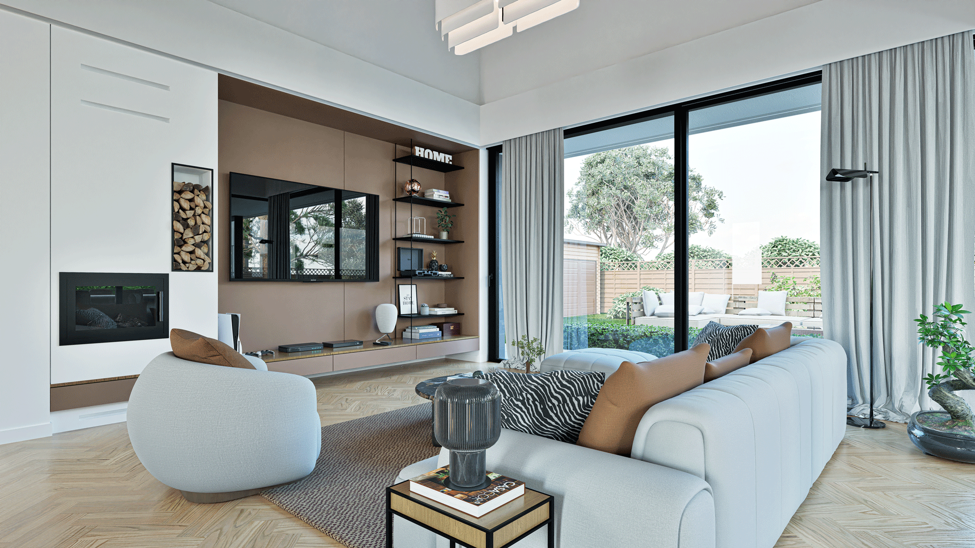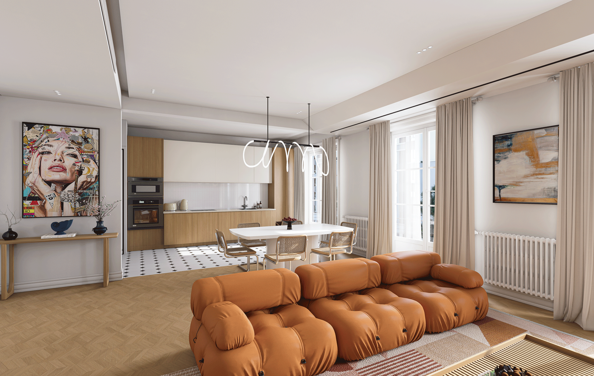 Pour vous proposer un rendu graphique esthétique et réaliste, nous aménageons à partir de mobilier disponible dans des bibliothèques 3D ou modélisé sur-mesure. Afin de suggérer un agencement chaleureux, confortable et fonctionnel, nous sommes attentifs au choix des matériaux, des couleurs, de la décoration et aux jeux de lumières.